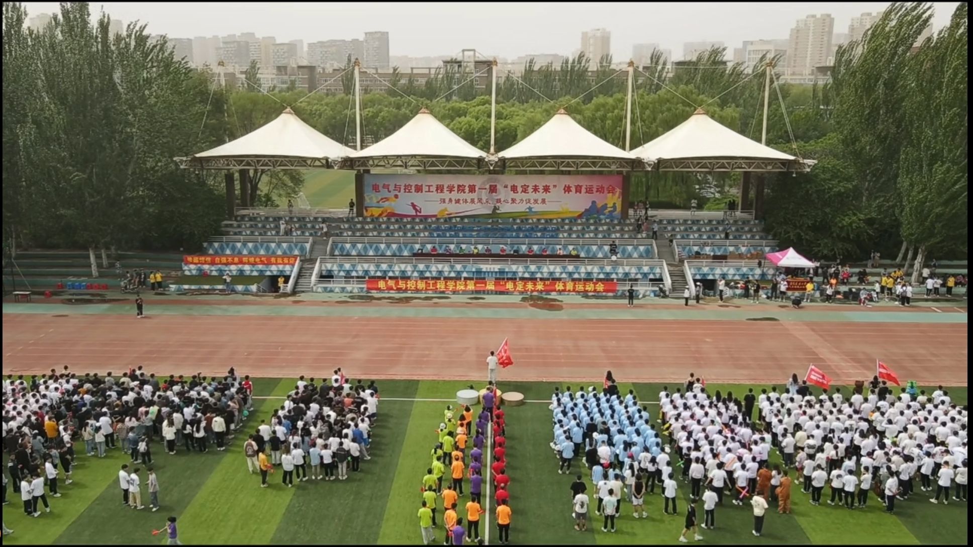 为深入学习习近平新时代中国特色社会主义思想,全面贯彻落实“学思想、强党性、重实践、建新功”的总要求,切实凝聚师生合力、激发奋进动力、提升办学活力,有效推动学院高质量发展,5月20日下午,电气学院组织开展了第一届“电定未来”体育运动会,全院师生近2000人参加了活动。