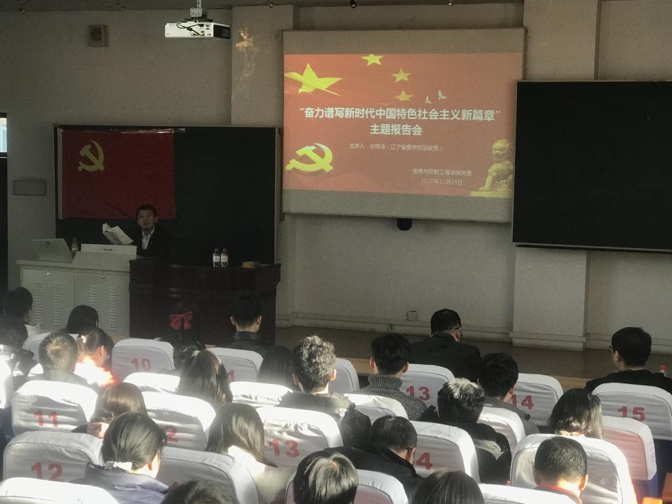 11月25日下午,信息学院邀请中共辽宁省委党校哲学教研部副教授崔明浩作了题为“奋力谱写新时代中国特色社会主义新篇章”专题报告。信息学院与BIM计算研究中心教师和全体学生党员听取了本次报告。