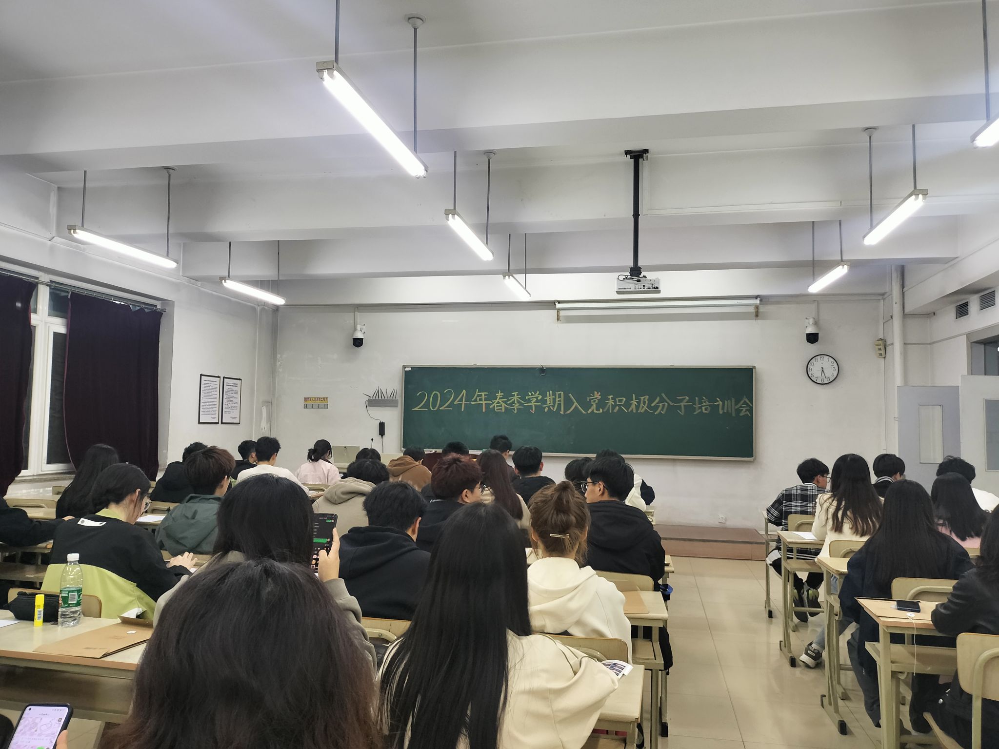 会议从青年大学生“为什么要入党”、“如何入党”两方面进行讲解。要求所有入党积极分子都要严格要求自己,认真履行职责,不断加强思想锻炼,要以革命先辈为榜样,时刻牢记全心全意为人民服务的宗旨。会议指出作为大学生中的积极分子,要深入到广大同学中,结合工作实际,在学风建设、宿舍管理、班级建设等各项工作中起到模范带头作用。