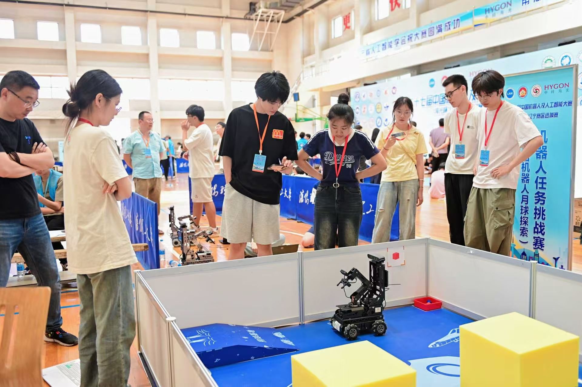 中国机器人及人工智能大赛是入选《全国普通高等学校学科竞赛排行榜》的重要国家级学科竞赛,已连续举办27届,成为检验高校创新创业和人才培养质量的重要平台。我院学生参加的机器人任务挑战赛(复合机器人月球探索)主要围绕人工智能领域开展,通过建图导航、路径规划、计算机视觉、深度学习等复合机器人及人工智能技术的综合应用,实现机器人无人驾驶、三维抓取、自主搬运等功能。