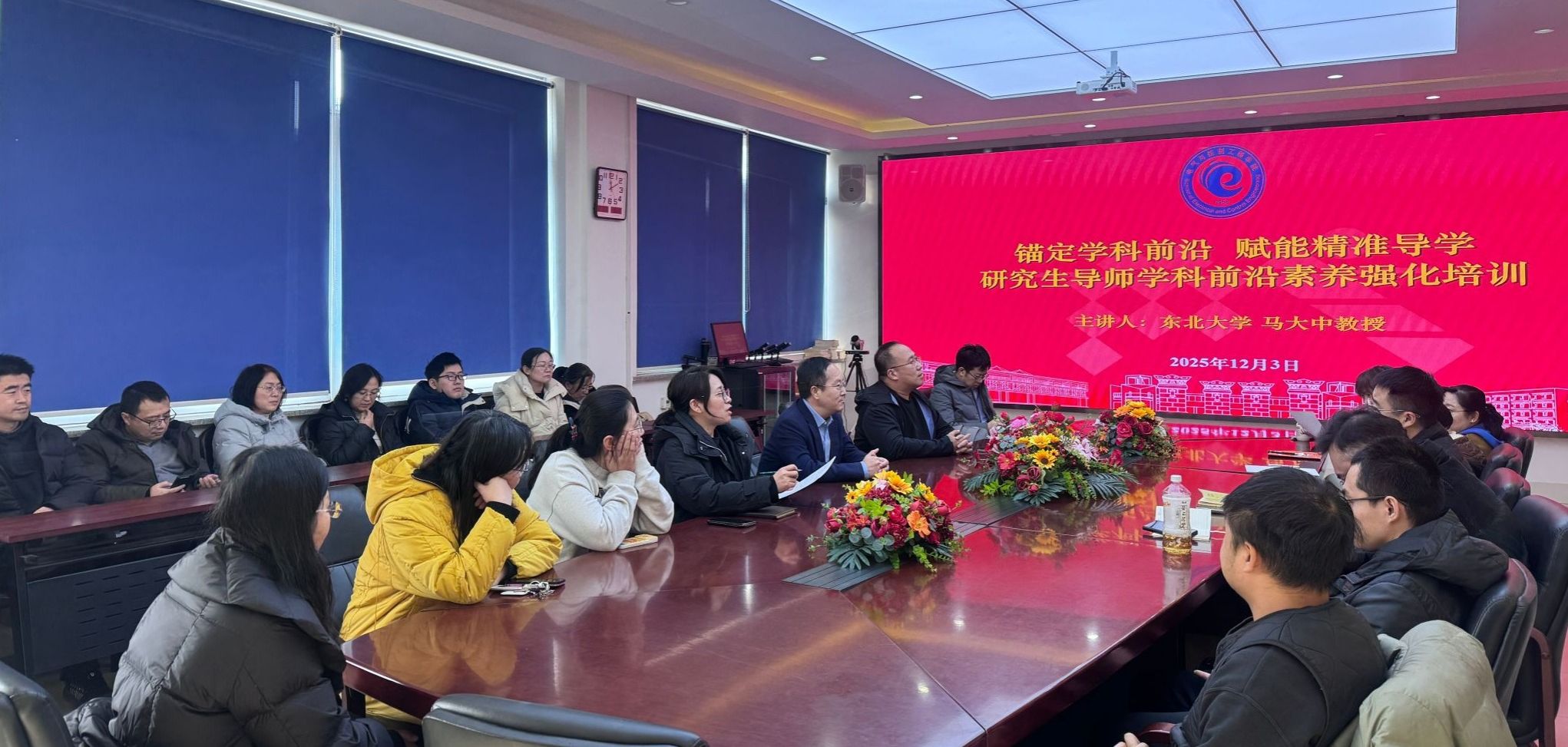学院特邀国家级青年人才、兴辽英才计划“青年拔尖人才”、东北大学博士生导师马大中教授,以“锚定学科前沿,赋能精准导学——研究生导师学科前沿素养强化”为题开展专题培训。马大中教授深入解读了学科前沿素养的核心价值,强调导师需紧跟学科发展潮流、把握研究领域前沿动态,助力学生明确研究方向、破解科研困惑;细致分享了育人实践经验,结合学风建设和科研问题,围绕“好的风气、好的心态、好的方向、好的团队”四个方面,强调师德师风是导师立身育人的根本,倡导以师风带学风;精准提出了团队建设关键举措,主张凸显团队效应,通过 “传帮带” 搭建梯队化培养体系,凝聚合力解决科研实际问题。