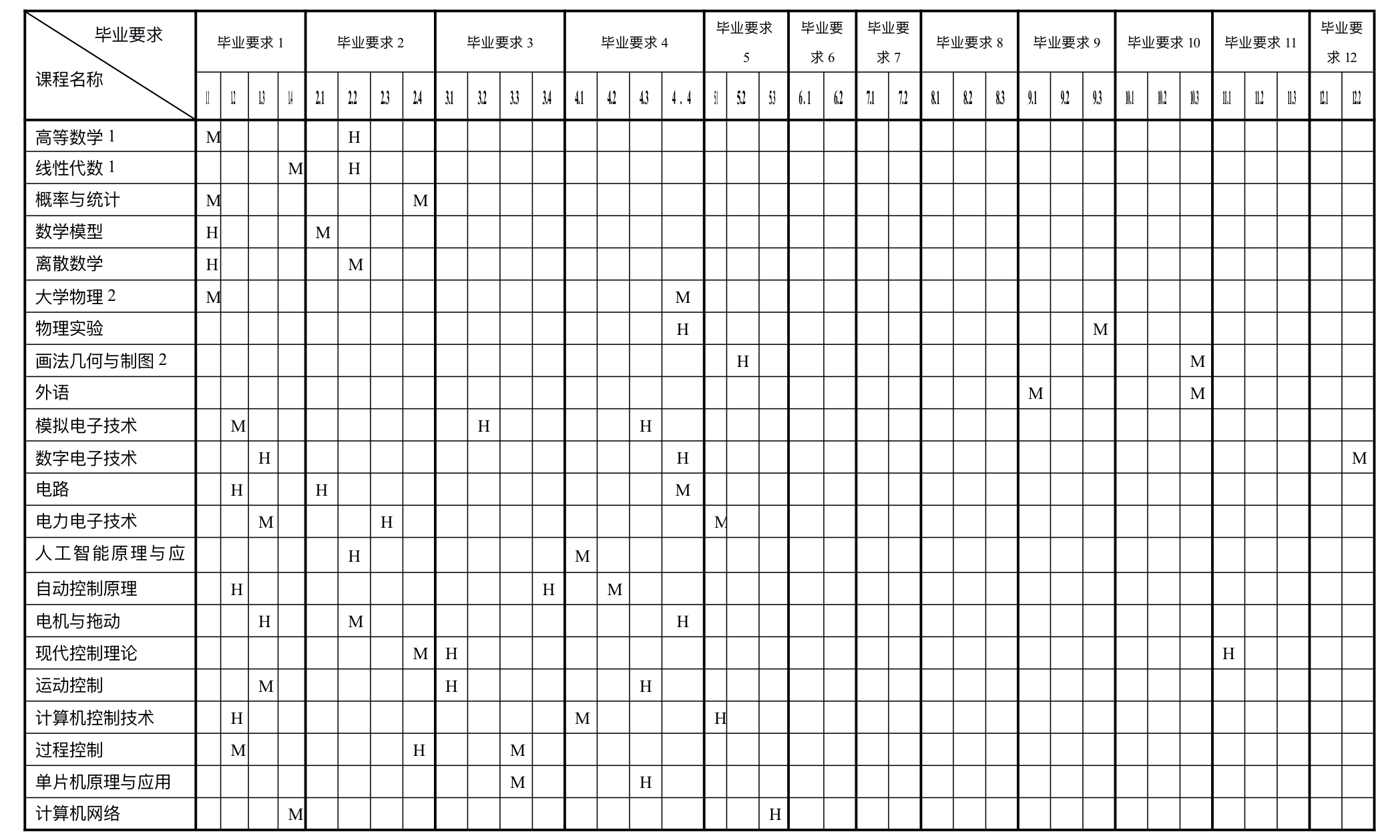 表4. 1 毕业要求对培养目标的支撑对应关系矩阵